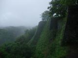 | 石垣好きにはとても見応えのある城です。 本丸のほうから見た武家屋敷跡付近の石垣、逆に武家屋敷跡から見た本丸の石垣が良いです。 七曲から駐車場に戻る道は滑りやすいので行かないほうが良いと窓口の方に言われましたが、七曲までは見たかったので行ったところ、岩をくりぬいたような道で、ちょっと感動しました。石段・石垣好きの方、地形を利用した城の好きな方は、はまるかもしれません。 ちなみに、雨が降っていたので、ちょっと滑りやすかったのは事実ですが、特に危険を感じるような道ではありませんでした。 |