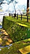 | 駅から歩いて20分ほど。 城に関するパンフレット類が全然みあたらなくて、資料館の入場チケットにプリントされている当時の地図の絵を頼りに歩くことになりました。共通券にはついてたのかな? 旧本丸は広々していて、杉だらけでも雨だったので花粉症に悩まされる事もなく、苔が美しい静謐な場所でした。 |