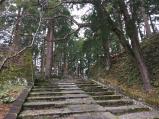 | 雨の中登城。本丸は杉の巨木が生い茂る。スギ花粉が大木に成長した時間にロマン。 |
