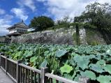 | 鹿児島空港からは以外と遠い。大手門まで行くが駐車場は無い。 2ブロックくらい離れた所に大きく有料駐車場があります。ハスがすごい堀を渡って大手門に入る。中より外の展示物が面白い。 |