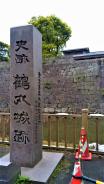| バス旅 10城目 現在は市内官公庁のある街中が城跡である。鶴丸城と言い平城で、後ろの城山に 自然の城壁として、戦い城より政治拠点とした城である。鬼門石垣に鬼門除けと した特徴的形だった。本丸後は現在再建工事中でした。 |