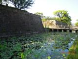 | 【88城目】 空港からバスで天文館下車。西郷像を見て鶴丸城跡へ。 西南戦争の銃弾痕が残る大手門桝形付近はあいにく修復工事中。中に入ると前回来た時にはなかった天璋院像があった。 一旦城外に出て鬼門除けの石垣を見てから黎明館へ。受付でスタンプを押印し館内を見学。展示は本当に充実しています。隅櫓跡から図書館のある二の丸跡に。 堀と石垣が残るのみですが、4年後を目指し計画されている御楼門と隅櫓の復元に期待しています。 |