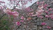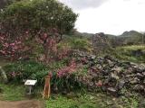 | ピンク色の濃い寒緋桜が満開で石垣とともに素晴らしい景色を楽しむことができました。 |