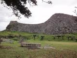| 中城城から車で2時間ほどで到着しました。 沖縄の城としては大きい部類に入るはずですが、見て回るとこれだけ?という印象でした。 スタンプは入場券売場で押しました。 百名城以外では下記を訪れました。(良かった順に番号を付けてみました) ・座喜味城…小規模な城ですが、よく復元されていて綺麗な石垣の城でした。←おすすめ2 ・勝連城…よく復元されていて見応えがありました。←おすすめ1 ・浦添城…復元された浦添ようどれがありますが、城としてはほとんど何も残っていませんでした。←おすすめ4 ・本島南端の具志川城…あまり復元されておらずぼろぼろな感じですが、海に面した見事な石積みの城であっただろうことが伺えました。←おすすめ3 |