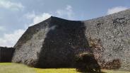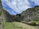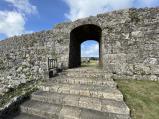 | 61番目 沖縄旅行2城目です。 首里城からレンタカーで、高速道路を利用して30分程度で到着しました。 正門までは、無料の電動カートを利用させて頂きました。 各門がアーチ型になっていて、潜り抜けると広々とした城郭が現われます。 |