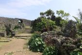 | 阿麻和利の居城・勝連城跡から、その好敵手・護佐丸の本拠地・中城城跡に転戦。中城城の入口では色鮮やかな花がお出迎え、入場料は400円。スタンプもここで押印。入場後は無料のカートで正門付近まで2分足らずで到着。 正門を抜けると、一の郭を囲む石積みは現在大規模な修復工事の最中。仮設の階段を利用して南の郭に進むと、いくつかの御嶽に参拝。南の郭には8つの遥拝所があるそうで、まさに祈りの場所。他方、アーチ門を抜けた一の郭は城内で最も広い郭で、正殿や護佐丸が宴を催した観月台の跡。石畳道に誘われて次のアーチ門を潜ると、かなり高い城壁に囲まれた二の郭。ここでは航海安全と郭に住む人々を守護する神を祀ったシライ富の御イベに参拝。ここでは高い技術を用いて築かれた曲線状の城壁と、そこからの中城湾の眺望が素晴らしい。三の郭、西の郭、大井戸、北の郭を経て裏門から城外へ。近くにあった伊壽留按司、さらには少し離れた場所にあった護佐丸の墓所も参拝。 写真は、南の郭にあった雨乞イノ御嶽とアーチ門、世界遺産碑と三の郭の城壁、中城城の主であった護佐丸の墓所。 |