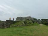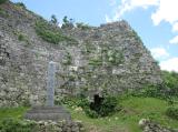 | 2城目 城跡なので石垣だけ。 東支那海と太平洋の両方を見ることができる。 石垣の修復工事?をしていた。 |