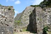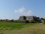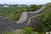 | 那覇から車で30キロほどで、今は沖縄高速が無料なので近い近い。ただ沖縄の人は運転が荒い。城は本丸からの景色は東シナと太平洋が一望でき、絶景。石垣があまり修復されておらず満足。 |