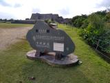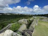 | 海中道路へ行く途中に寄りました。入り口は貧相ですが電気自動車で城近くまで連れて行ってもらい、青い海と空に挟まれた城壁は綺麗でした |