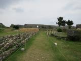 | 30城目 沖縄発上陸。那覇から恩納村(宿泊地)に向かう途中にあった 石垣だけだったが、高台にあり、景色がよく、 趣きがすごくあった 周辺には、海中道路が見所 |