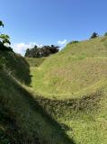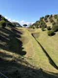 | 山中城 2024年10月13日 | 興国寺城から途中三島スカイウォークを観光してから移動。売店向かい側の駐車場は運良く出る人がいて止めれましたが埋まっていました。混んでいるときは坂下にある駐車場のほうが良いと思います。城は尾根沿いに広い縄張りとこの城の象徴的な障子堀が本当に見事です。これを力攻めで落とされたのですから北条氏の衝撃はいかばかりかと思います。 |
