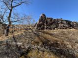 | 千早城 2025年3月22日 | 駐車場から山の豆腐でスタンプを押してから登城。石垣のない中世の山城ですね。戦前の国家神道で趣が削れているのが残念なところ…商店跡の廃墟が残っていて、昔は賑わっていたんだろうなと思いました。 |