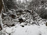 | 八幡山城 2025年2月24日 | 近江八幡駅からバスとロープウェイで登城。もう3回目の登城になります。 この日は積雪が残った雪の中で真っ白でした。豊臣秀次の夢の跡がよく残っています。 |