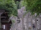 | 観音寺城 2012年5月5日 | 22城目G.W.で渋滞すると思い、早めに出発したものの 意外にスムーズに到着し、まだ有料道路が閉鎖中だったため 先に『信長の館』へ。(コレで全ての予定が狂った・・・) 【繖山林道は9時から】 午後に出直し、いざ観音正寺への石段を登り、スタンプ ゲット。 本丸跡への入り口に気付かず、あらぬ脇道から突撃してしまい 山道をさまよい歩き、山頂付近でへんぴな石垣を発見。 こんな場所にまで石垣が・・・と驚きはしたものの 何しに来たんだか。。。 |