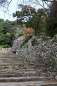 | 八王子城 2011年9月17日 | 初登城です。 時おり小雨がぱらつく中での登城となり、後の予定もあったため御主殿までの見学となりました。 木々に囲まれた古道を歩いて行くと目の前に現れる曳橋と石垣は感動ものでした。 今後、ガイダンス施設も計画されているようでますます整備されていくんでしょうね。 どなたかも書かれていましたが、カーナビで八王子城をセットすると山の反対側へ案内され付近にみえた方に道を尋ねるはめに(汗) 行かれる方は御注意を。 |