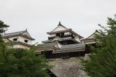 | 松山城 2011年6月11日 | 折り返し50城目は松山城。 20年振り3度目の登城です。 山麓から歩いて登城予定でしたが、秋山兄弟生誕地で時間を費やし案内の方から「行きは歩きだと天守閣が危ないかも…」の一言で断念しました。 何度訪れても天守群の迫力には圧倒されます。 小雨が降る中、下りは歩いて二ノ丸史跡庭園に向かうも残念ながら閉館時間を過ぎており中に入ることは出来ませんでした。 ホテルまでの途中、坂の上の雲ミュージアムに寄り道し街中のメチャおいしい小料理屋で四国の海の幸を満喫して初日を締めくくることが出来、大変満足でした! |