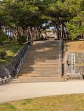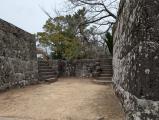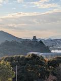 | 洲本城 2026年1月17日 | 徳島空港からレンタカーで移動。 三熊山標高133mの山頂とガイドにある通り車も坂を登っていく。洲本城跡 駐車場に車を停めたけどさらにう登った所に月見台 駐車場もある(台数は洲本城跡駐車場の方が台数は停められる)。 本丸大石段て天守へ向かう道が2つに分かれるが、搦手口方面からは石垣の修復工事をしており本丸大石段まで戻り天守へ向かう。 天守は模擬天守だが、幅広の石段を上がり天守まで来ると洲本八景1 大浜を大観 の石碑あり大阪湾を一望できる。 |