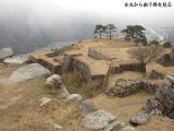 | 高取城 2009年12月15日 | 近鉄線「飛鳥駅」前のレンタサイクル古都(0744544508)で予約していた原チャリを借り高取城を目指す。土佐街道に入りすぐ左手の子嶋寺の高取城唯一の遺構建物の二の門を観てから(寺に一声を)「夢創館」に寄りスタンプ押印、街中(土佐街道)をしばし見学して壷阪寺経由で登城しダウンロードした古図を頼りに見学、勇壮な山城に興奮しばし!!建物はないが石垣はしっかり残っています。 |