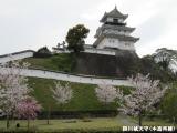 | 掛川城 2010年4月7日 | JR掛川駅北口を出て真北に広い道を10分程歩くと掛川城です。城内突き当りの二の丸御殿(現存)にスタンプあり、(¥300)書院づくりの御殿は風格もあり見ごたえあります、玄関の起(むくり)破風も見所です。復元天守は小さいですが木造の為か温かみがあります、又御殿側からは石垣もあり白漆喰で見事です。忍び返しも必見。 |