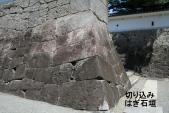 | 松阪城 2009年8月25日 | JR松阪駅より徒歩15分位、表門より登城し民族資料館でスタンプ押印、石垣をじっくり見てまわり裏門から退城して御城番屋敷(修理中)と、その土蔵(唯一の現存建物)をみて駅へ引き返す。石垣は見事です。 |