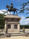 | 仙台城 2009年9月7日 | 大手門脇櫓や石垣が復元されていたので以前のように伊達正宗象のみという訳でなく見どころは増えています。 |
