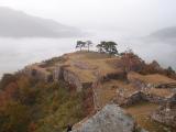 | 竹田城 2010年11月13日 | 雲海の時期まで待っていた竹田城。 まずは朝5時半に立雲峡に到着。すでに駐車場には20台以上の車が。 コンデジでは限界を感じ日が登る頃に竹田城に移動。 駐車場は満車。なんとか停めてかめさんコースで登城。(かめさんコースは車道でした。) もう最高としか言いようの無い眺めにシャッターを切りまくる。 曇り空に黄砂の影響もありましたがまさに天空の城でした。 9時前に駐車場に戻ると警備員もいました。雲海の時間が終ると駐車場も空いてました。 駅前の観光案内所でスタンプを押し、篠山城へ。 |