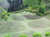 | 一乗谷城 2015年6月5日 | 6/5久しぶりの一人旅で一乗谷城へ。 福井駅から京福バスで一乗小学校下車(所要30分)。上城戸跡から下城戸跡までの1.7Kmの一乗谷川沿いの道の両側に広がる復元町並、義景館跡、庭園群を見て廻り、最後に資料館を見物しました。 その当時この地に一万人以上の人が生活し、華麗な文化が花開いて、その頂点に立っていた義景は足利義昭の誘いに乗って一乗谷を出ていかなくとも十分満足できる日々を過ごしていたに違いない。又信長ほどの野望を持ち合わせていなかったのでしょう、この地で朝倉5代は終わりを迎えました。 御所には義昭が9か月滞在していたというが、何も残っておらず、少し高く整地された平坦地が保存されているのみで足を延ばして見る価値はありませんでした。 一方、義景館跡は三方が掘と土塁で囲まれ、背後に山城を備えた防備の堅い作りになっていて、上城戸跡と下城戸跡の城下町を守る土塁と合わせて見ごたえがありました。 又、義景館跡の背後の山側に点在する庭園群にも一族の住居が建てられていた様で、朝倉一族が栄華を極めた地を散策できて満足しました。 翌朝は越前大野城に登城。 |
