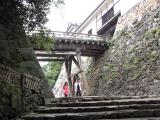 | 岡城 2016年6月22日 | 4人組で出かけた今回の九州城巡り旅の2番目の百名城は岡城。梅雨時に出かけたので雨は覚悟していたものの、6/22の天気予報では大雨と土砂崩れ警報が出ており、前泊の長湯温泉から岡城へ向かう道路状況が心配でした。友人二人が迂回路を検討して何とか岡城料金所に着いたときは土砂降りの雨で、登城を断念しました。 しかし、スタンプ(98城目)をゲット(良好)できてほっとしました。今回の旅は100名城スタンプ完了を目指しての旅だったので、本当にうれしかった。友人に感謝です! 料金所であの巻物を200円でゲット、普通は300円のところ城内に入らない為割引きしてくれました。良心的です。 その後、高千穂峡に寄り小雨の中見物して、途中西都原考古館に立ち寄り、宮崎に向かいました。ホテルでは宮崎牛の焼肉を堪能しました。 岡城は目のくらむような高石垣が素晴らしい山城の様です。巻物に記載された縄張り図を見ていると自分の足で歩いて見物したいという欲が出てきます。いつかリベンジしたいものです。 |