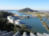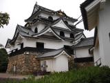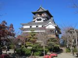 | 犬山城 2010年6月27日 | 犬山遊園駅から木曽川沿いを進んでいくと山頂に犬山城が見えます。木曽川の流れは、梅雨時で水かさが増しているせいか勢いが激しい。天守を目指して石段を登っていくと櫓門があり、そこの2階に管理事務所があり、スタンプを押しました。 いよいよ天守を登りつめると、最上階からの眺めはサイコーで、特に木曽川の流れが眼下に展開して、劉備が死んだ白帝城もこの様な地形の上に建っていたのかと思いをはせました。彦根城の天守展望台からの眺めは金網に邪魔をされ興味半減でしたが、ここ犬山城天守からの眺めはすっきりとすがすがしいものでした。歴代の成瀬家の御殿様の写真を拝見して国宝犬山城を後にしました。 デジカメが壊れてしまい、優美な犬山城を撮れなくて残念でした。次回行く時は是非遠くからの犬山城を撮りたいと思います。 2011/11/26に再登城しました。ツインブリッジを渡って鵜沼側を歩きライン大橋を渡って犬山側に戻ってきました(約40分)。天気も良く遠景の良い写真が沢山撮れ満足。前回のデジカメ故障のリベンジを達成しました。 |