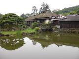 | 大洲城 2012年11月1日 | 11/1午後、愛媛5城の旅最後の大洲城、宇和島から40分程度で着きました。 見どころは木造で復元された4層4階の天守閣と4つの現存櫓でしょう。 残念ながら苧綿櫓と三の丸南隅櫓は見損ないましたが、左に台所櫓、中央に天守、右に高欄櫓を遠望する肱川の土手から(肱川対岸からではなく城北西側の土手から)の写真がベストショットで、印象に残りました。 天守閣は均整がとれ美しく、2つの櫓と渡り櫓で連結した見事な姿を見せていました。天守の内部も木造で梁が組まれ実に見事な出来栄えで、年月を重ねれば現存天守に負けない風格が出てくるでしょう。 しかし内部の展示は大洲城と関係ない坂本竜馬関係の展示が目に付きました。何でも竜馬が脱藩して京に上る時大洲を通ったそうな。 大洲城の後、臥龍山荘を見物。臥龍院の縁側に座って茅葺屋根と庭園をバックに、係の人に3人の写真を撮ってもらいました。洋食好きの友達はここが大のお気に入りで、不老院の畳の上に大の字に寝て大満足の様子でした。確かに安らぎの別世界の心地がします。 その後旅の一行は松山で解散しましたが、楽しい旅となりました。二人の友達に感謝。 |