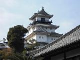| 丸亀城 2012年5月18日 | 朝7時半にホテルを出発し、登城しました。 丸亀城の4段構えの石垣の上に聳える天守閣にわくわくしながら近づくには、市民広場を右手に見て大手門正面に出る道路を進むのがベストです。私は残念ながら駅からの道路を直進したのですこしずれてしまいました。 しかし市民広場付近からの石垣の構成と天守閣の景観は見事としか言いようがありません。天守閣を遠望するのが好きなので、犬山城を木曽川の対岸から見た時に匹敵する感動を覚えました。 撮影スポットは他にもあり、堀外、堀内、三の丸、二の丸を廻れば、本丸から見る小さな天守閣よりも迫力のある天守閣と石垣群が眺望できます。見返り坂を登ったところにある 「石垣の美」という案内板あたりの石垣の美しさは熊本城の石垣を思い出す程でした。 丸亀城のうたい文句は12現存天守の1つと石垣の美しさです。半日の登城でこれらを十分堪能できました。 お土産に城内観光案内所と天守閣入口で丸亀うちわを計3本も買いました。これから夏に向かうので使うたびに丸亀城を思い出すでしょう。前日の夕食は骨付鳥をテークアウトしてホテルでビールを飲みながら食べ、ジューシーで美味しかった。 |