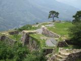 | 備中松山城 2013年5月31日 | 31日最終日は備中松山城へ。備中高梁駅から、タクシーで8合目のふいご峠まで1250円。 駅を出発してすぐ、タクシーの運転手から「正面の山の山頂に屋根が見えるでしょう。あれがお城ですよ」と言われ、帰りに市役所前あたりで、かなりの望遠で山頂にある天守の屋根を撮ることができました。目のいい人なら肉眼でも見えるでしょう。 ふいご峠駐車場から700mの道を登ると本丸ですが、400m登ると石垣が出現し、大手門跡がすぐそこで、あとは写真を撮りつつ進むのできつくは感じません。従って400mまでの登りはすこしきついですが、ゆっくり上れば問題ありませんでした。 見所は、?天守閣、五の平櫓、六の平櫓の3点セットを二の丸からワンショットする、? 大手門付近の重層的な石垣、特に切り立った岩盤上の石垣は圧巻、?後曲輪から見る現存 の二重櫓でしょうか。 これで、3大山城登城完了です。岩村城、高取城は石垣が素晴らしく感動しましたが、山頂に天守等の建物が残っている備中松山城はもっとワクワクしました。 帰りはふいご峠から観光乗合タクシーに乗り、武家屋敷前で降り、散策しながら駅まで戻りました。 |