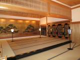 | 二条城 2011年11月24日 | 修学旅行時の記憶はほとんどなく、今回2回目の登城。 地下鉄二条城前駅で下車し、東南隅櫓から時計回りに外堀を一周して南門、南西隅櫓、北大手門を見物して東大手門から入城して、管理事務所でスタンプゲット(良好)。唐門を通り二の丸御殿を写真に収め御殿内を見物。さすがに現存御殿で国宝だけあって、各部屋の作り、障壁画、欄間等見所が多い。特に大広間には一の間、ニの間に人形が飾られてあり、当時の将軍が大名を謁見している場を再現してあり視覚的に理解できるようになっていて印象深かった、大政奉還もここで行われた様です。 その後、二の丸庭園から本丸、天守台へと進み、外に回って内堀の外から天守台を写真に収めて終了。所要約2時間で、次の目的地である南禅寺、永観堂の紅葉狩へ。 今は壮麗な武家の御殿の趣ですが、ここに5層の天主閣が建っていれば、まさしく実戦可能なお城であったでしょう。 今までの御殿の見物で印象に残っているのは、彦根城表御殿(再建)、松代城真田邸、掛川城二ノ丸御殿(現存)ですが、ここ二条城の二の丸御殿がやはり圧巻です。 |