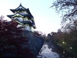 | 弘前城 2014年5月4日 | 久保田城の後、弘前城へ。 弘前城の石垣工事のため現在の風景が見られるのは10年後とのことを聞き、急遽登城。 さくらまつりをやっているため天守閣にも21時まで入場できる。 日本三大桜の一つに数えられる弘前公園の桜は前日の雨でだいぶ散ってしまったようだが、それでもその凄さは垣間見れた。 天守閣からみる岩木山の夕暮れも素晴らしかった。 |
