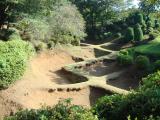 | 大野城 2011年6月4日 | 59城め。車で県民の森管理事務所に向かいました。 スタンプをゲットしてから、その付近の公園をぶらり。 全体的にガイダンスは弱く、現地に行っても、どこになにがあるかわかりにくいです。 あげく緑が生え放題という感じもして、山の中に入っていくのは躊躇させれらました。 というわけで、礎石を一つ見つけたあとは、車で山道を移動。 でも、車じゃ全然遺跡らしいものを探せませんでした、残念。 達成感ないまま時間ばかりがどんどん過ぎていってしまいました。 結局1時間くらいいました。 |