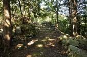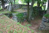| 月山富田城 2011年8月2日 | 21城目。 NHK大河ドラマ「毛利元就」が放送された年以来の登城です。 【 駐車場 】 道の駅駐車場 (山中御殿近くまで車で行けます) 【 個人的評価 】 65点 尼子氏ゆかりの大規模山城てすが、夏草におおわれ、人の踏み跡はほとんど消えてしまい、案内板も非常に少ないのでルートがわからず大変苦労しました。 歴史資料館でスタンプの後、地図をいただき丁寧にルート説明もしていただきました。 鳥取城の久松山本丸よりはかなり楽だとの事。たしかに鳥取城より楽でしたが石畳が苔むした所があり注意が必要です。 蜂や蛇の姿は見ませんでした。相当草ぼうぼうだったので近くにいても見えなかっただけかもしれません。まさに「夏草や兵どもの夢の跡」という句がぴったりの山城跡でした。 時間が許す方は米子城跡もおすすめです。山上の本丸に吉川広家時代と中村一忠時代の二つの天守台が残っています、景色もたいへんいいです。富田城より車で約30分です。 歴史資料館の隣にある道の駅併設の食事処"藍"の出雲そばは中々うまいです。 |