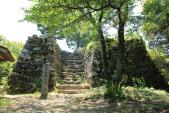 | 鬼ノ城 2011年7月9日 | 11城目。 岡山城より国道180号線経由で約40分です。 【 駐車場 】 ビジターセンター隣の無料駐車場 【 個人的評価 】 65点 かなり手をかけ古代山城の感じが良く出ているとおもいます。ただ自分は16世紀後半から17世紀にかけての城跡が好きなのでこの評価になりました。 15年ほど前に出張のついでに数回訪れたことあります。 以前はまだ発掘調査の最中で、建物皆無、ビジターセンター、駐車場、道も全く整備されておらず、訪れる人もほとんど無く、夏には半ズボンでは歩けない状態でした。 100名城登録のおかげか、かなり整備され公園化されたので簡単にひと回りできるようになりました。ただ、足元には十分気をつけたほうが良いと思います。 |