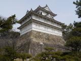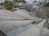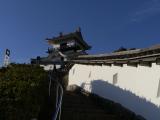 | 丸亀城 2012年1月25日 | 38城目。 現存天守。独立式層塔型。 四国めぐり最終日。前日泊まった今治からJRの始発で丸亀へ移動し、徒歩にて登城。 先ずは大手門手前の堀より眺めます。石垣上にそびえる天守と堀沿いの白壁がいい感じです。大手門から入城後、1週することに。御殿表門、番所、長屋などを通り、さらに野面積みの石垣などを見学し再び大手門方面より見返り坂を上がります。右側に扇の勾配の二の丸高石垣があらわれます。素晴らしいです。しばし、石垣の周りの小道を散策します。三の丸から二の丸へ。本丸下北側より眺める天守は、まさに丸亀城のイメージで、石垣の城って感じです。 本丸へ上りいよいよ天守へ。小さいですが飾られています。入口側は漆喰だけです。 内部の階段は意外と広いです。手斧削りの跡も残っています。スタッフのおじさんも親切で、全体的に満足度の高い見学になりました。 スタンプは天守入口にて。シャチハタ式で良好です。 |