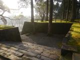 | 鬼ノ城 2011年12月17日 | 20城目。 門、石垣。 本日2城目。備中高梁よりJRで総社へ移動、タクシーでビジターセンターへ。 西門、角楼を見たあと、高石垣を見ようと左まわりでがんばりましたが、タイムオーバーの為遠景からだけであきらめました。戻るまでに1時間15分かかりました。思ったより起伏があり時間がかかります。途中の突出部からの景色は良かったです。 スタンプはビジターセンターにて。ゴム印式で一部欠けますがまずまずです。 |