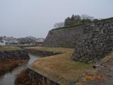 | 篠山城 2013年12月21日 | 57城目!初登城 朝から、みぞれ交じりの雨が降る中、この城に登城! 外堀と石垣が残っていて、城跡で木造での御殿の復元は珍しいが、大書院が見事に復元されていました。藤堂高虎の築城ということか石垣と内堀の間の広い犬走も特徴的でした。天下普請(江戸幕府が諸大名に命令して行われた工事)ということで、天守閣は建てられなかったそうですが、天守台に今も残る石垣群を見るとこの城の堅固さがうかがえました。埋門(うずみもん)の石垣には築城に携わった大名を示す刻印が残っているそうですが、天候も悪く、少ししか見れず残念です。埋められてしまった城が多い中、3つの馬出が残っているのは珍しいそうですが、案内図がなく結局見ることができませんでした。できれば外堀から見れる馬出の案内があればいいなあと思いました。 |