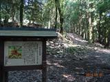 | 郡山城 2014年9月5日 | 65城目! 初登城(今回の旅行8城目) 時間が押していて、歴史民俗博物館には入館できなかったのに、そこの方(女性)に本当に親切に道順等を教えていただきました。途中の毛利隆元墓近くの駐車場から本丸を目指しました。ここは山全体を城郭化した大規模な山城で山頂には本丸、二の丸、三の丸跡があり、土塁や石垣跡、堀切?も残っていました。登城道は比較的整備されていて、歩きやすかったです。往復1時間半くらいでマムシや虫に注意とと聞いていたのですが、行きは20分くらいで行けマムシや虫も気にならなかったです。帰り別の方に下りてしまって、途中戻ったので少し時間がかかってしまいました。ただ山頂も木が生茂って暗いので遅くなってからの登山はお勧めできません。 |