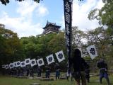 | 広島城 2013年10月26日 | ひろしまフードフェステイバルの日だったので、ものすごい人出でした。岩国藩鉄砲隊の火縄銃実演が見られてラッキー。ものすごい迫力でした。 |