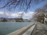 | 岐阜城 2012年3月26日 | 眼下に流れる長良川の風景が素晴らしいです。 かつては織田信長もこの風景を眺めて全国統一を果たそうと決意していたのでしょう。 岐阜城のある金華山は、本格的なハイキング登山の人も多く、装備が十分でなければロープウェイの利用がおすすめです。ロープウェイを降りてからでもそこそこに歩きます。 |