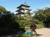 | 弘前城 2013年9月28日 | 電車で訪問。弘前駅からレンタサイクル。北門から追手門に向かって見学。城内の見学所要2時間と表示されていましたが、確かに見どころたくさん。天守、櫓3、門5など。本丸からの岩木山の眺めも素晴らしかったです。スタンプは天守1階で押印。 弘前城の後は、長勝寺で山門や藩主霊廟を見学。他にも五重塔、武家屋敷、教会などを観光しました。 桜か紅葉、色彩豊かな時期に訪問してみたいと思いました。 |