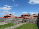| 首里城 2017年3月15日 | 62城目。「公共交通機関だけで行く世界遺産グスク巡り」 那覇空港からゆいレール(モノレール)で終点首里まで30分弱、そこから徒歩5分ほどで首里城公園の西の入口に着く。ここから守礼門まで、城壁を鑑賞しながら散策できる。ほとんどの建造物が戦後の再建であるが、雰囲気は北京の故宮とよく似ており、城というよりは王宮である。 その一方で、城としては、東から中枢へと至る歓会門〜広福門のルートに3連続の枡形虎口を見ることができ、また、うねるように曲がりくねる城壁も見応えがある。ただ、その印象は中城や今帰仁の城壁を目の当たりにした際の衝撃に吹き飛んでしまうことになる。 なお、正殿の観覧は有料で入館料は820円、ゆいレール一日券を購入すれば団体料金で入場可。 |