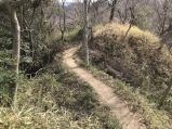 | 八王子城 2017年2月27日 | 61城目。 当城は、主に館があった山麓の「居館区」と山城部分の「要害区」とに分かれる。参観に際しては、要害区まで行くか否か、また、要害区に行くとしてどこまで攻めるか(本丸のある山頂までか、さらにひと山先の詰城までか)の選択を迫られる。今回は初登城なので、要害区は本丸までとした。 登山口から本丸まで、写真を撮りながらで45分。ストックを使ったこともあるが、砂利道が少々滑りやすいほかは特に鬱蒼とした所もなく、大変登りやすい山道。ただ、縄張りを読み取るのは簡単ではなく、登ってすぐに現れる「段曲輪」(写真左)や、金子曲輪と柵門台の間、右手断崖に見える石垣(かなり崩落)程度しか見所はなかった。山頂には本丸(写真中央)・松木曲輪・小宮曲輪の三つの曲輪があるが、いずれも拍子抜けするほど狭く、一体何人で籠城することを想定していたのか、不思議に感じた。 居館区では階段状の石垣(写真右)が鉢形城とも共通し、やはり北条氏は高石垣を築けなかったのかと印象に残った。総じて構造を読み解くのが難しい城で、こんな玄人向けの城をよく百名城に選んだものだと思った。詰城まで行けば、また印象も違うかも知れない。 |