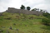 | 七尾城 2013年6月29日 | 第28城目 七尾駅に着き、まずは観光案内所へ。2時ごろに着いたので、歩いて今から登城は、難しいですよと言われる。タクシーで本丸駐車場へ。途中七尾城史資料館へ途中下車しスタンプゲット。運転手さんに帰りはどうしますか、といわれ歩いて駅まで下りますと答えた。歩いて本丸駐車場から本丸へ向かう途中で、高岡駅のコインロッカーで御一緒だった人とまたお会いした。七尾の駅のコインロッカーでも一緒だった。『こんにちは。またお会いしましたね。』『なんでいらしたんですか?』『タクシーで。』『では、御一緒すればよかったですね。』 おなし百名城の仲間でした。本丸からの眺めは、天気がよかったせいでしょう素晴らしかった。 |