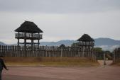 | 吉野ヶ里 2018年11月27日 | 第67城目 朝は雨模様であった。吉野ヶ里につくと雨はやんでいた。弥生時代のやかたは床が高い。 |