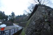 | 伊賀上野城 2014年3月30日 | 第43城目 お昼に伊賀上野市に到着しました。あいにくの小雨交じりで、昼食を先にとりました。天守閣前の広場(本丸でしたでしょうか?)団体さんに写真を頼まれました。『いいですよ、撮りますよ・・・・』『みんなあつまって・・・・・』集まるまで待つこと3分。3分は長かった。石垣が立派でした。雨が降ってなければ、お堀の外まで回ってみたかったのですが。 |