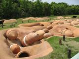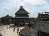 | 吉野ヶ里 2014年5月5日 | 北九州2泊3日の6城巡りの旅、3日目。5城目は吉野ヶ里。佐賀城から車で45分程で到着。東口駐車場に駐車。この日はこどもの日だからか駐車場代が無料でした。入場料420円は払いましたが、こどもは無料のようでした。お昼前だったので早めに入ってすぐのレストランで昼食。意外に(?)ボリュームもあっておいしいという評判を事前に調べていた通り、佐賀牛ハンバーグおいしかったです。さて、食事も終わり散策開始です。入口入ってすぐガイドさんが数名の人たちに説明していたので合流させてもらい、環濠入口広場〜南内郭まで30〜40分位丁寧にガイドしてくださいました。自分たちで回っていたらササっと見て終わっていたでの説明してくれるのはありがたいです。北内郭の建物はその後のお城の前身だそうです。その後、北墳丘墓〜古代植物の森〜古代植物館〜中のムラ〜倉と市をぐるーっと全部まわり3.5時間程も滞在していました。何せ園内は広のでかなりへとへとになりました。城というより完全に古代テーマパークです。でも旦那はこういう雰囲気が好きだということで100名城というのはそっちのけで気に入ったようです。 |